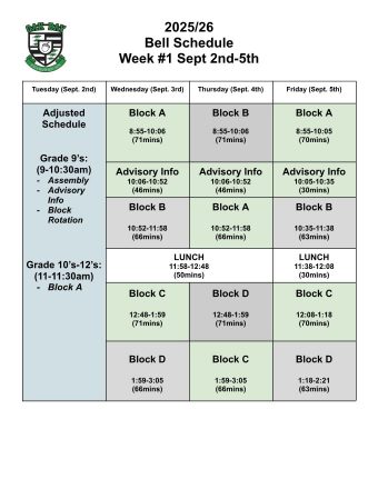 • Daily Bell Schedule 2025-2026 (Semester 1)
